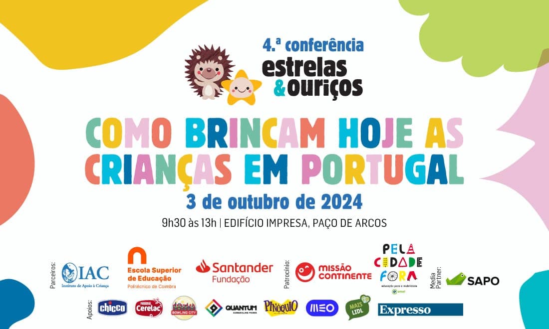 A conferência Como Brincam Hoje as Crianças em Portugal tem como ponto de partida o estudo “Portugal a Brincar III - 2024”, elaborado pela Escola Superior de Educação de Coimbra – em parceria com o Instituto de Apoio à Criança e a Estrelas & Ouriços – este estudo baseia-se num inquérito a mais de 1.000 famílias com crianças até aos 10 anos de idade.