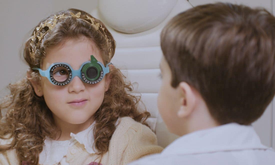 Perfeito! Tal como 90% da população mundial, Maria Luísa tem uns lindos olhos castanhos. E está muito à vontade nesta consulta, até porque já tem óculos desde os 2 anos.